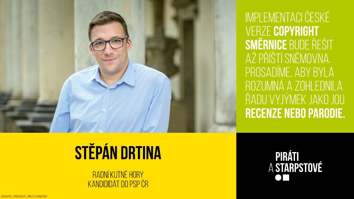 Vládou schválená implementace evropské směrnice o autorském právu, která mimo jiné zavádí automatizované filtrování a mazání obsahu na internetu, nebude naštěstí do konce volebního období projednána. Respektujeme přijaté evropské právo, ale požadujeme jeho citlivé zavedení do českého zákonodárství. Ministerstvo kultury se při implementaci směrnice vydalo cestou, která nezohledňuje celou řadu výjimek z autorského práva, jako jsou recenze nebo parodie. Navíc ne všechno z uvedené novely souvisí přímo s přijatou evropskou směrnicí.