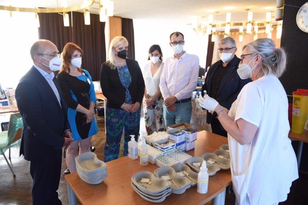 Tour pokračovala do královského města Slaný, které ve spolupráci s místní nemocnicí vybudovalo očkovací centrum. To zvládá naočkovat přes tisícovku lidí denně.